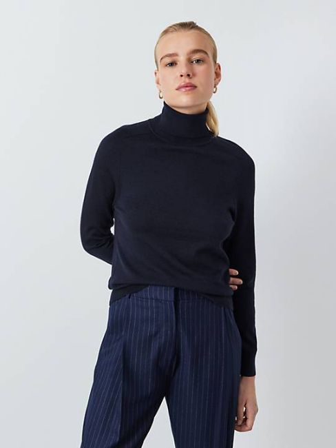 John Lewis Cashmere Roll Neck Jumper, Black Black, 14.