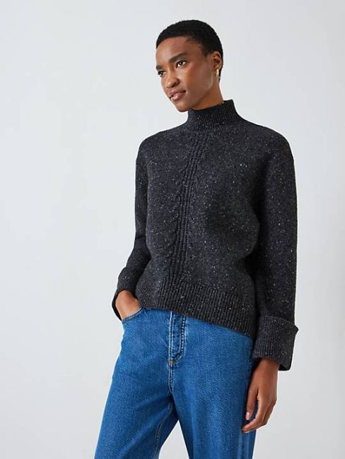 John Lewis Donegal Roll Neck Wool Blend Knit Jumper, Seaside, 14.