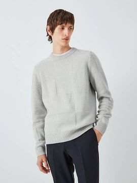 Kin Lambswool Grid Interest Crew Jumper, High Rise, L.