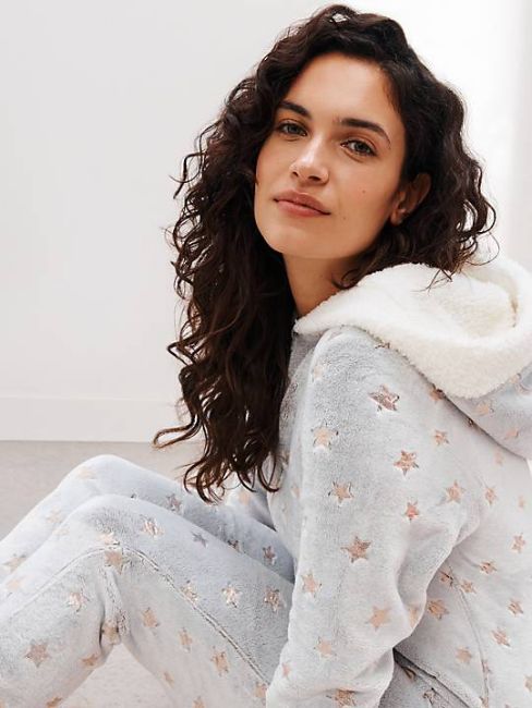 John Lewis Snowflake Velour Onesie, Navy/Silver, S.