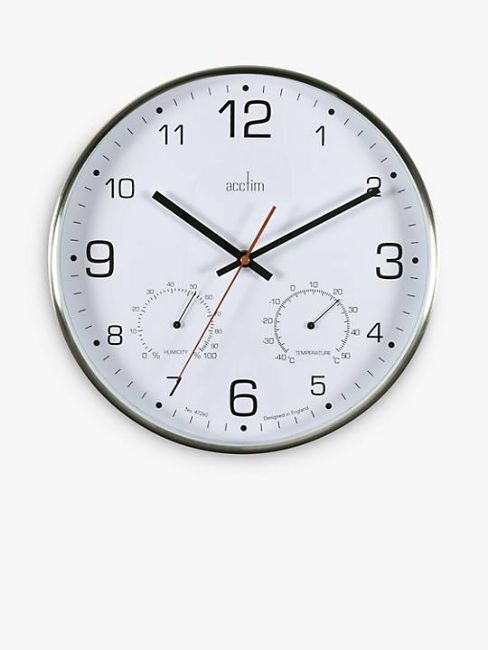Acctim Komfort Analogue Non-Ticking Sweep Quartz Wall Clock, 30.5cm, Silver.