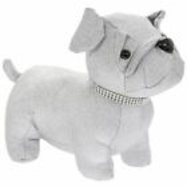 Silver plush pug doorstop