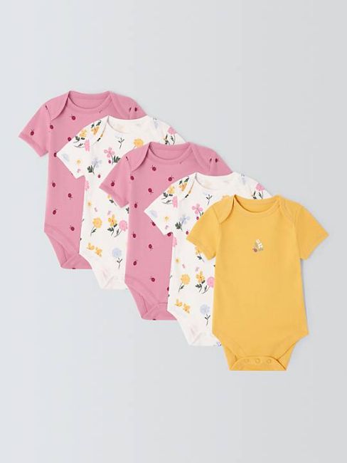John Lewis Baby Cotton Fox & Dragon Bodysuits, Pack of 5, Multi, 0-3 months.