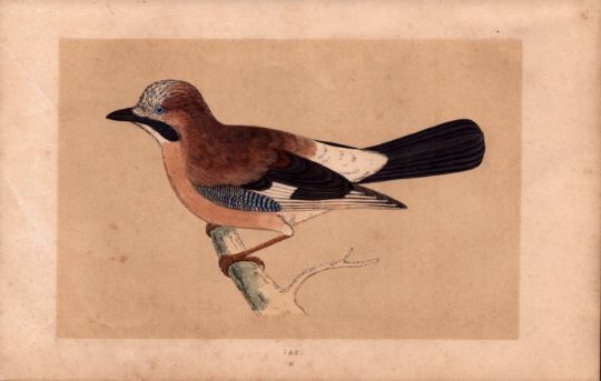 Title: Jay Rev Morris Antique History of British Birds Engraving.