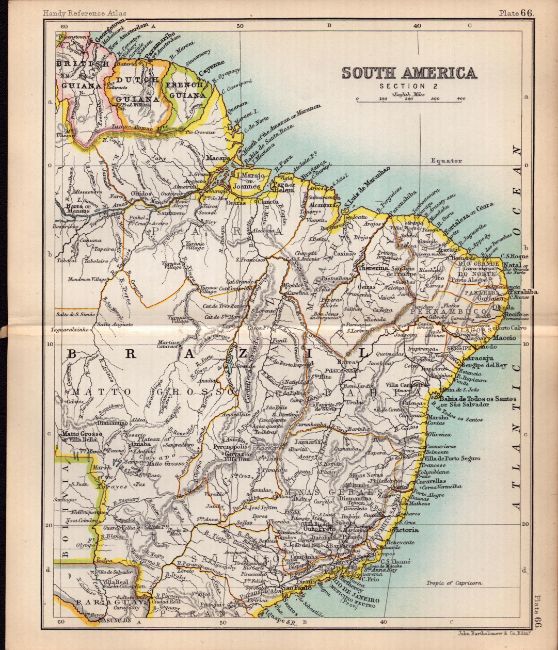 South America Section 2 Double Sided Victorian Antique 1898 Map.