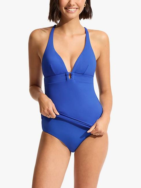John Lewis Corfu Rib Plunge Swimsuit, Black, 10.