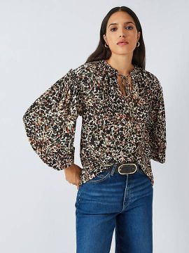 John Lewis Leopard Print Cross Body Bag, Khaki Leo Print.