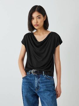 John Lewis Fluid Drop Neck Top, Black, 14.