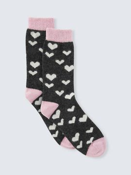 John Lewis Dogs & Hearts Print Organic Cotton Mix Socks, Pack of 3, Grey/Black/P.