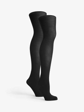 John Lewis ANYDAY 80 Denier Opaque Tights, Pack of 2, Black, L.