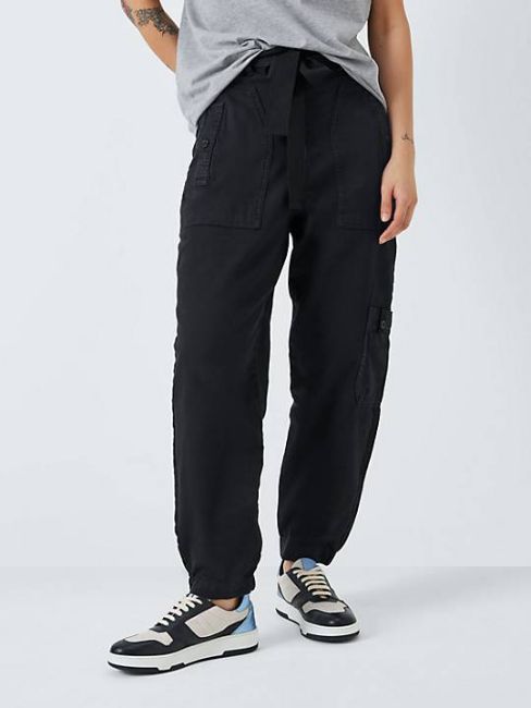 John Lewis Crepe Wide Leg Trousers, Black, 12.
