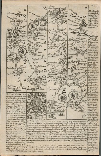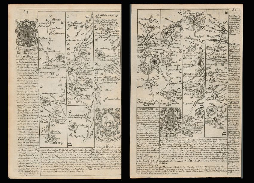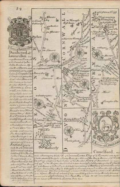 Bowen 290 Yrs Old  Detailed Road Map Cornwall Padstow Camleford.