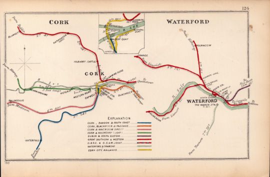 Cork & Waterford Ireland Antique Coloured Railway Diagram-124.