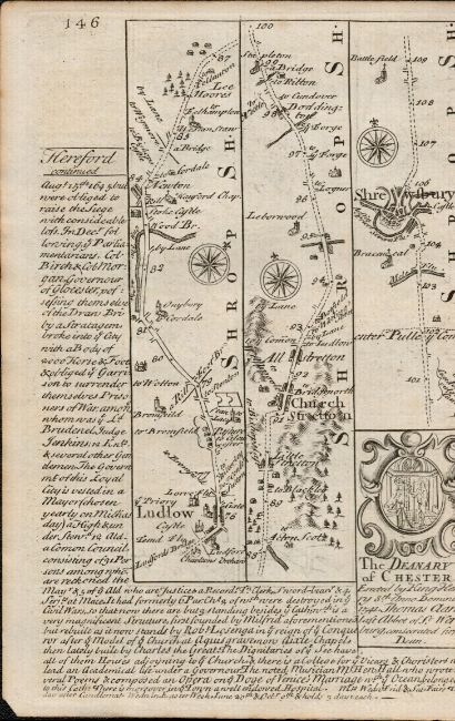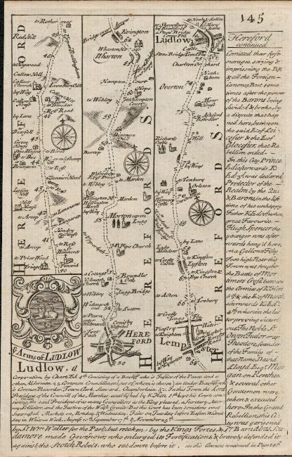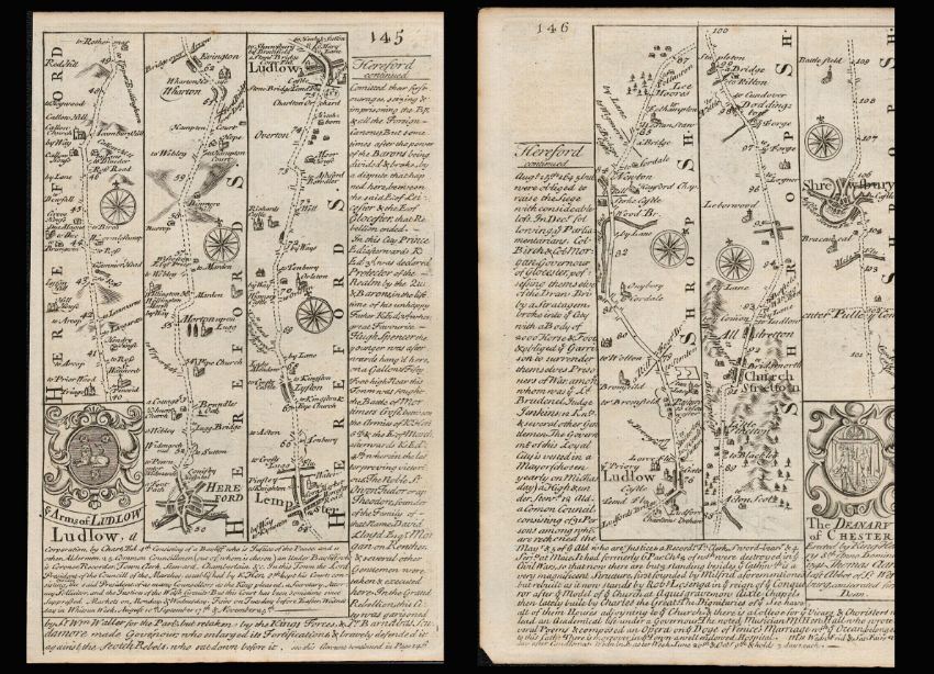 Bowen 290 Yrs Old  Detailed Road Map Hereford, Ludlow, Shrewsbury.
