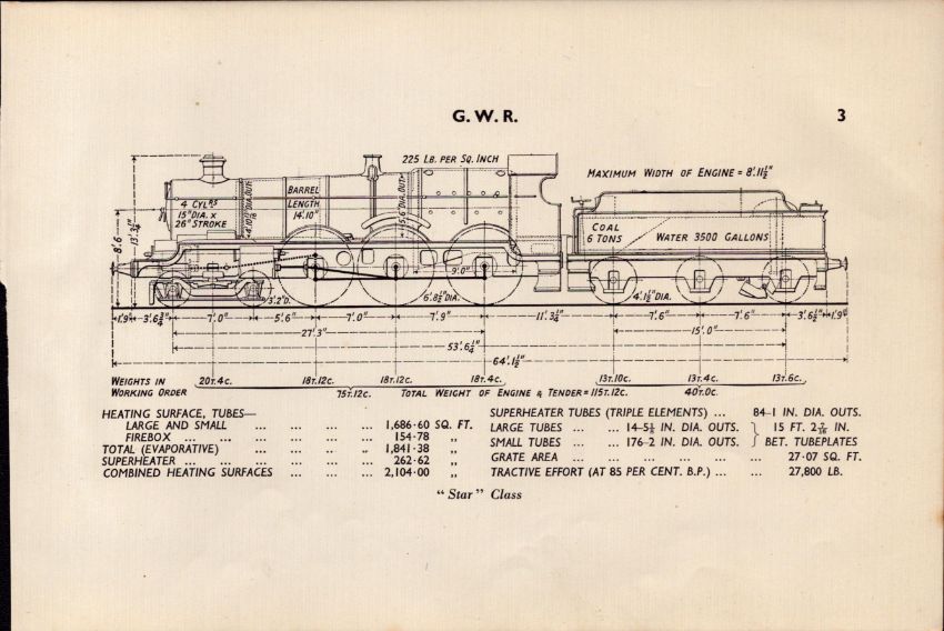 GWR Railway Star Class Locomotive Detailed Drawing Diagram 85 Yrs Old Print.