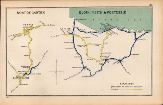 Elgin, Keith & Portessie Scotland Antique Railway Junction Map-38.