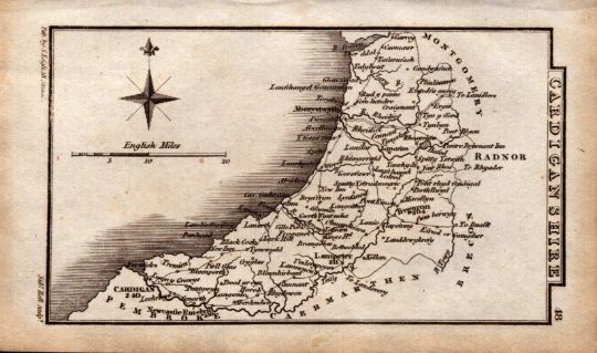 Wales Cardiganshire Antique Copper Engraved George IV Map by Sidney Hall.