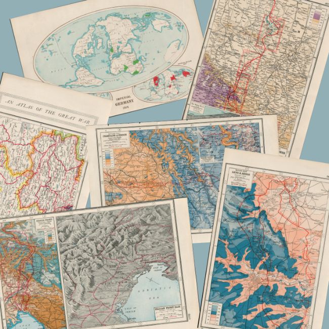 These included numerous detailed battlefield maps covering the Western and Eastern Fronts.