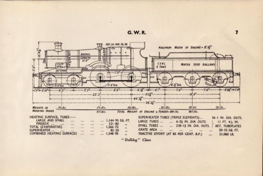 GWR Railway Bulldog Class Locomotive Detailed Drawing Diagram 85 Yrs Old Print.