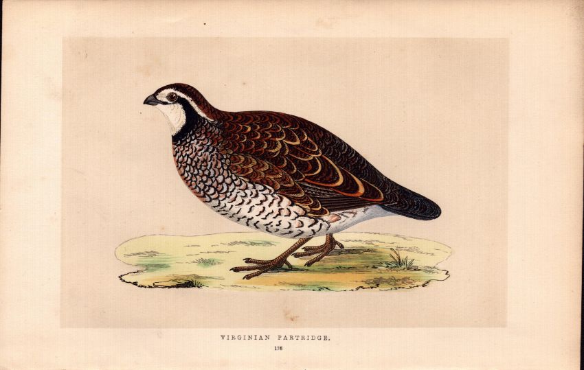 Virginian  Patridge Rev Morris Antique History of British Birds Engraving.
