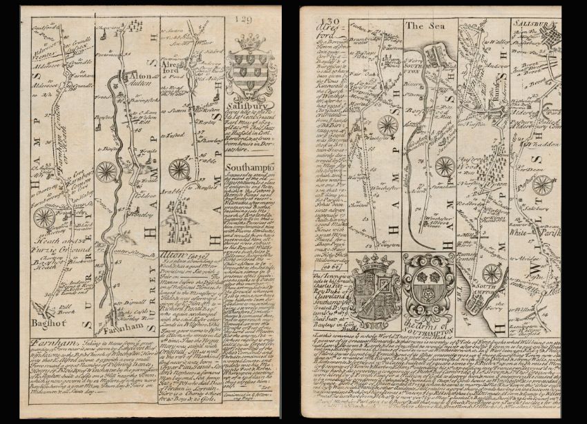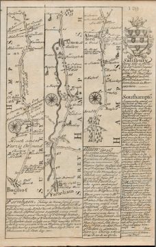 Title: Bowen 290 Yrs Old Detailed Road Map Bagshot, Farnham, Southampton, Salisbury.