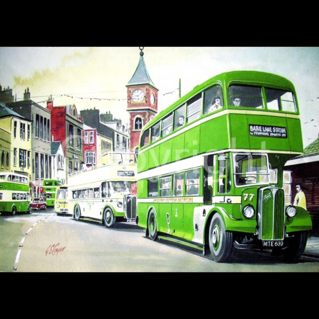 Title: Morecambe Promenade Nostalgic Bus Scene Metal Wall Art