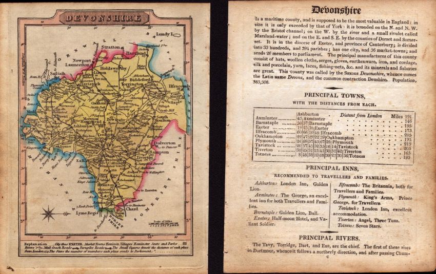 Devonshire Engraved Hand Coloured George IV Antique Map & Text.