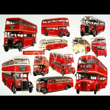 Title: Lancashire United Transport Bus Montage Metal Wall Art