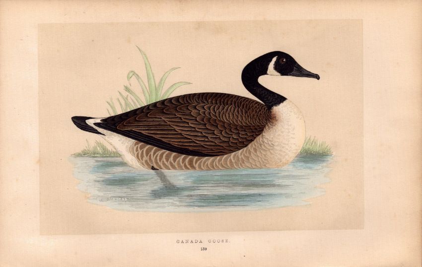 Canada Goose Rev Morris Antique History of British Birds Engraving.