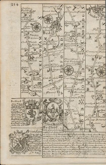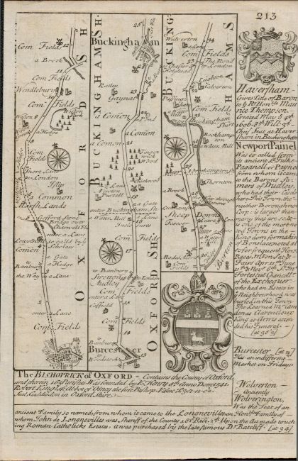Bowen 290 Yrs Old  Detailed Road Map Oxford Buckingham, Bedford, Cambridge.