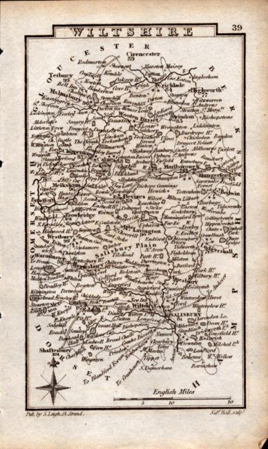 Wiltshire Antique Copper Engraved King George IV Map by Sidney Hall.