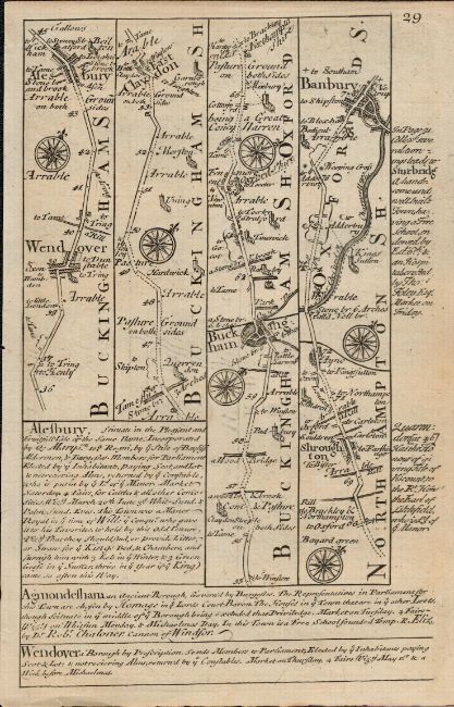Bowen 290 Yrs Old  Detailed Road Map Aylesbury, Stratford Upon Avon  Banbury.
