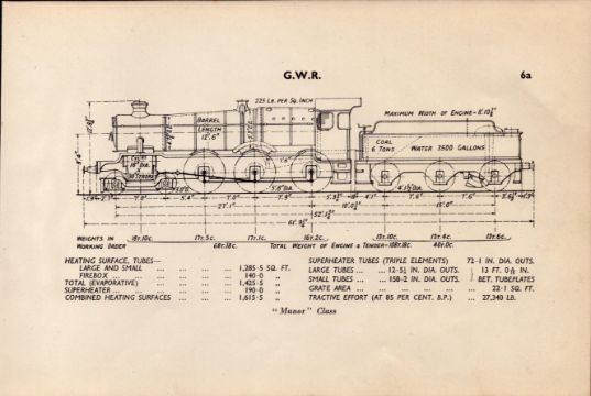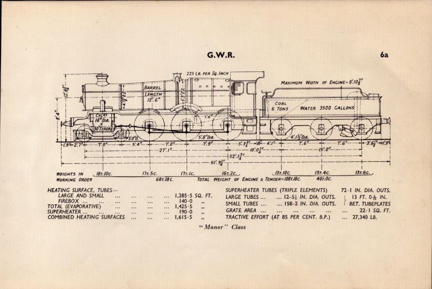 GWR Railway Manor Class Locomotive Detailed Drawing Diagram 85 Yrs Old Print.