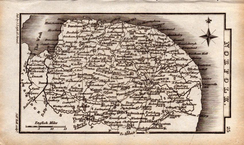 Norfolk Antique Copper Engraved George IV Map by Sidney Hall.