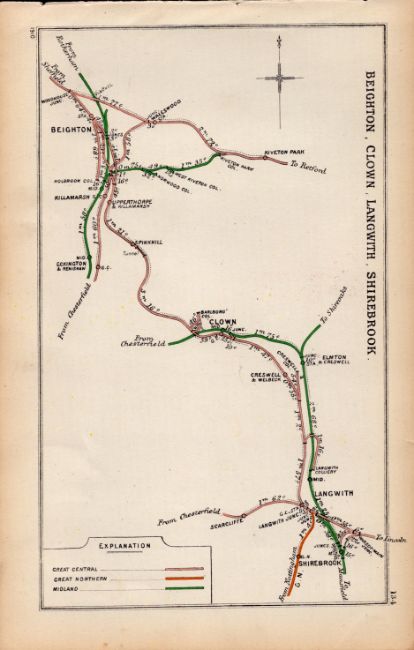 Beighton, Clown, Shirebook, Derbyshire Antique Railway Diagram-134.