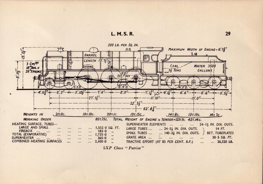 l.M.S.R. Railway The Patriot Detailed Drawing Diagram 85 Yrs Old Print.