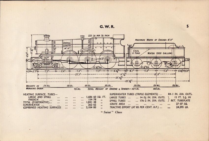 GWR Railway Saint Class Locomotive Detailed Drawing Diagram 85 Yrs Old Print.