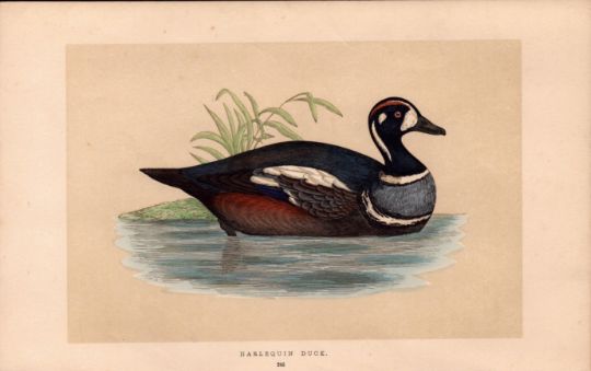 Title: Harlequin Duck Rev Morris Antique History of British Birds Engraving.