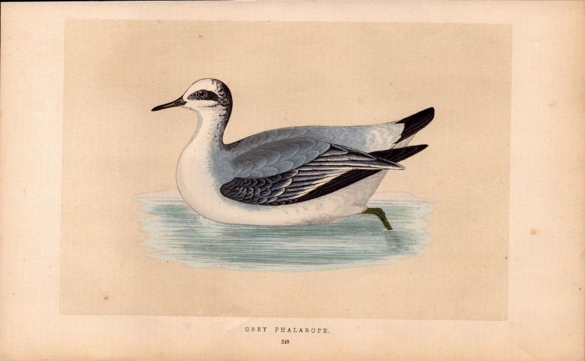 Grey Phalarope Rev Morris Antique History of British Birds Engraving.