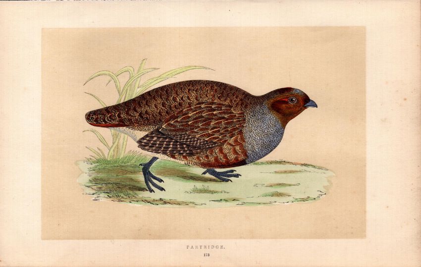 Patridge Rev Morris Antique History of British Birds Engraving.