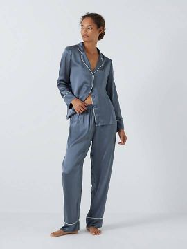 John Lewis Piped Silk Pyjama Set, Clover, L.