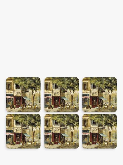 Pimpernel 'Paris' Cork-Backed Placemats & Coasters, Set of 6, Green/Multi.