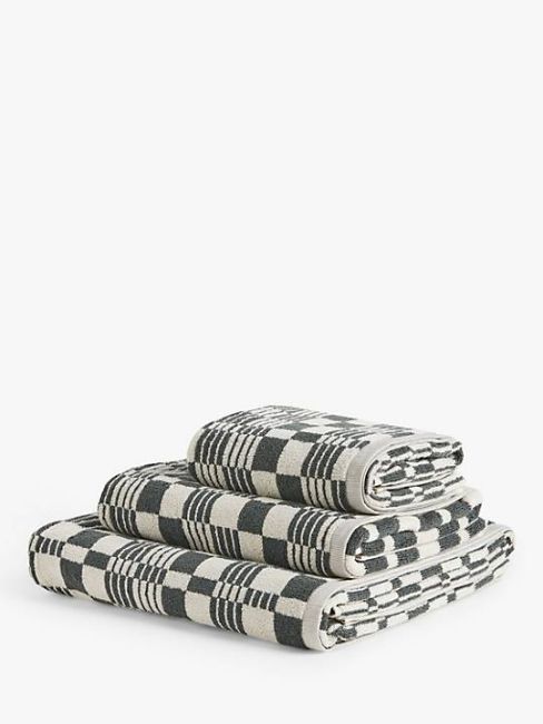 John Lewis Check Bath Sheet, Graphite.