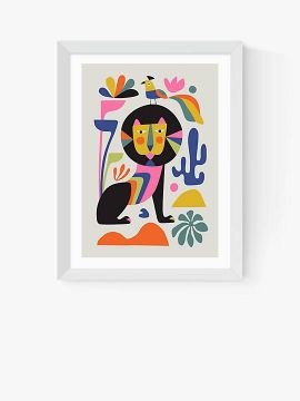 EAST END PRINTS Rachel Lee 'Black Lion' Framed Print, Black Frame, 43.4 x 33.4cm.