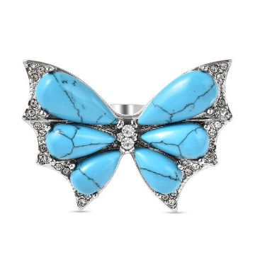 Title: New! Blue Howlite Beads Necklace,Earrings & Butterfly Ring Sterling Silver
