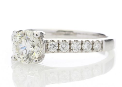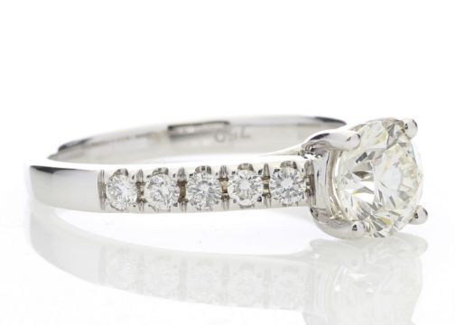 Set with ten round brilliant cut diamonds on the shoulders to make a total diamond weight of 1.32 carats.