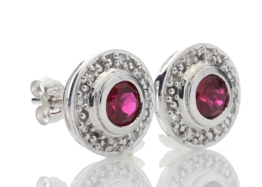 Title: 9ct White Gold Created Ruby Diamond Earring 0.16 Carats