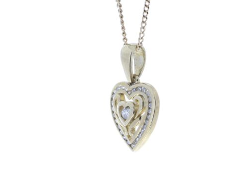 Title: 9ct Yellow Gold Heart Pendant Set With Diamonds With Centre Heart and Swirls 0.18 Carats