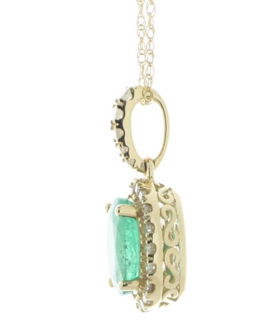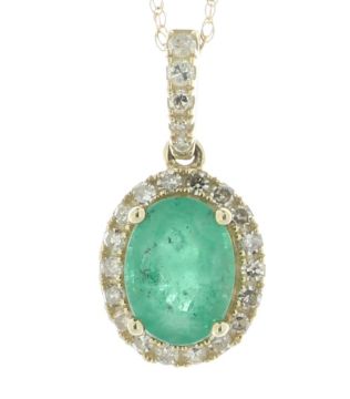 The bale is diamond set and an 18" 14ct yellow gold trace chain is threaded through it.
