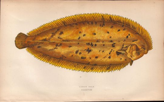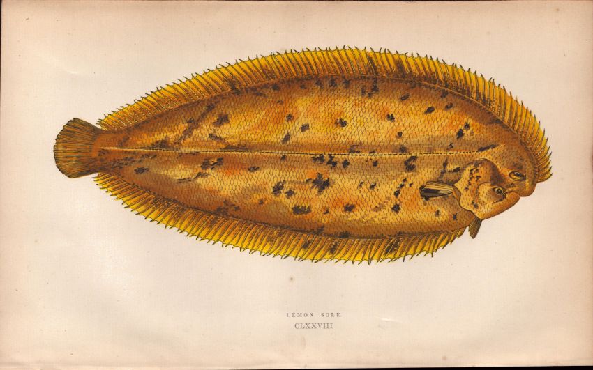 Lemon Sole Antique Johnathan Couch Coloured Fish Engraving.